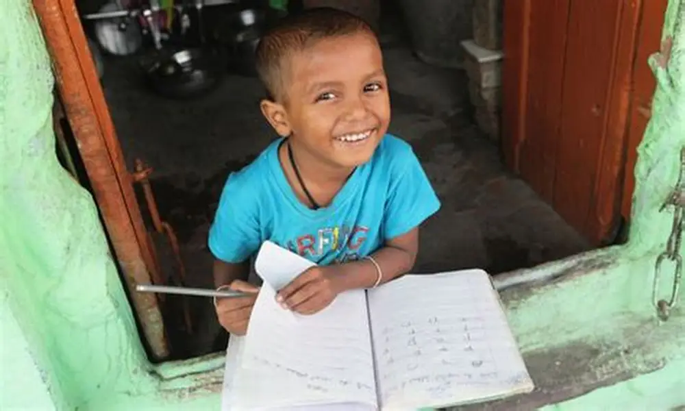 아이는 거울을 보며